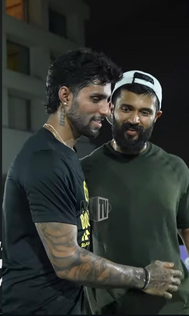 Actor Vijay Deverakonda, who is currently busy promoting his upcoming film ‘Kingdom’, recently engaged in a fun and energetic pickleball match with Mumbai Indians cricketer Tilak Varma—and the friendly face-off quickly became a viral sensation online.